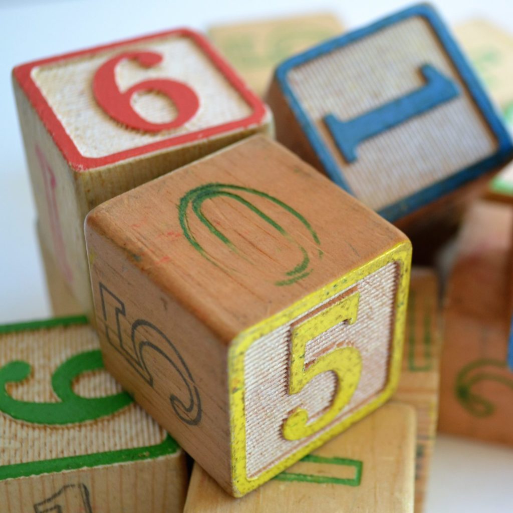 Compter le plus loin possible, dénombrer des objets de la maison, les trier selon leur grandeur, leur forme, reconnaître les chiffres en composant un numéro de téléphone, compter les pâtes dans différents contenants, comparer les collections (il y en a moins plus/moins/autant que…), les additionner.