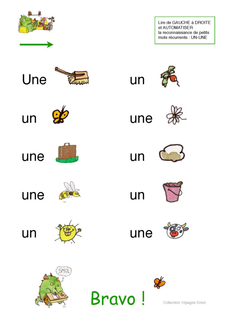 Lecture petits mots (déterminants : le/la/l’, un/une)