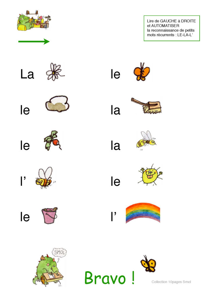 - Entraîne toi ensuite à lire ces petits mots suivis du mot qui est dessiné.
