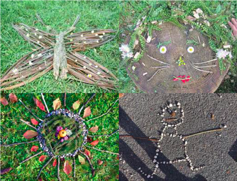 Lors d’une promenade en forêt ou à l’extérieur, réalise une sculpture, un tableau avec des feuilles, des branches, des cailloux, des fleurs, … et donne-lui un titre.