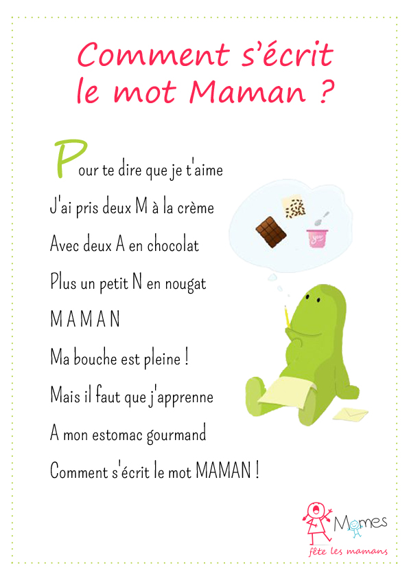 Apprends cette petite poésie pour pouvoir la réciter à ta maman dimanche!
