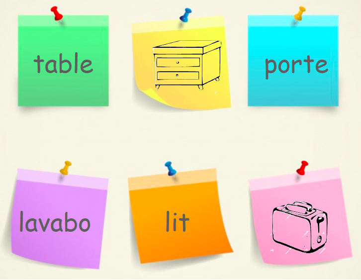 Demande à quelqu’un de ta famille de dessiner un objet de la maison sur un post-it; tu dois le reconnaître et le coller au bon endroit.